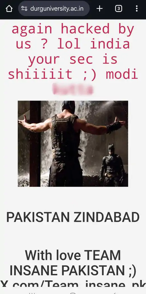 दुर्ग। हेमचंद यादव विश्वविद्यालय (दुर्ग यूनिवर्सिटी) की वेबसाइट सोमवार को एक बार फिर हैक हो गई. पाकिस्तानी हैकर्स ने यूनिवर्सिटी की वेबसाइट पर पीएम मोदी को गाली लिखी हुई पोस्टर अपलोड कर अपने मौजूदगी का सबूत दे दिया. सोमवार को हैक हुई वेबसाइट शाम तक रिस्टोर कर ली गई.