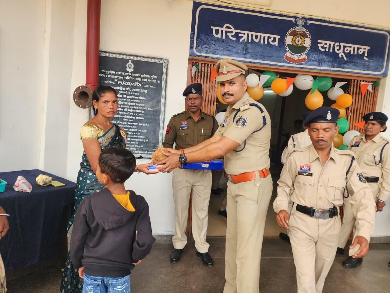अंदरूनी क्षेत्रों से आये ग्रामीणों को पुलिस अधीक्षक बीजापुर डॉ. जितेन्द्र यादव की मंशा के अनुरूप सिविक एक्शन कार्यक्रम के तहत महिलाओं को साड़ी एवं पुरूषों को चरण पादुका (चप्पल) वितरित किये गये। कार्यक्रम में थाना गंगालूर से थाना प्रभारी निरीक्षक गिरीश तिवारी के साथ उप निरीक्षक एम.एस. पैंकरा, पन्नालाल चन्द्रवंशी, सउनि. पी. सुरेश राव, त्रिपुरारी राय, प्र.आर. राजाराम कड़ियाम के साथ समस्त थाना स्टाफ उपस्थित थे।