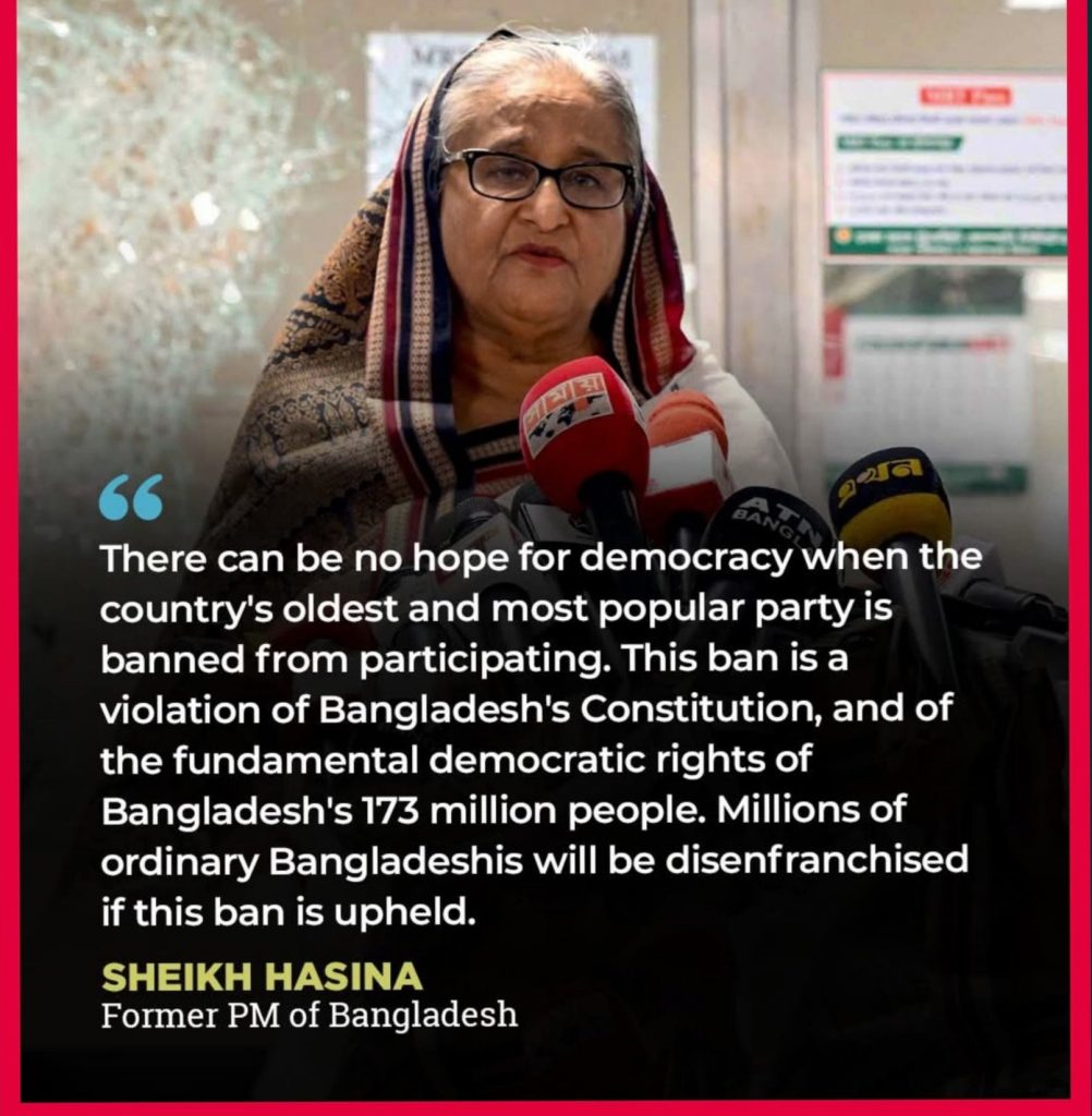 अपने ऊपर लगे आरोपों का जवाब देते हुए शेख हसीना ने कहा कि मैं अपने ऊपर लगे सभी आरोपों का स्पष्ट रूप से खंडन करती हूं क्योंकि ये आरोप एक कंगारू अदालत द्वारा लगाए गए हैं, जिसका नियंत्रण राजनीतिक विरोधियों के हाथों में हैं। याद रखिए एक भी बांग्लादेशी को इस अंतरिम सरकार को वोट देने का मौका नहीं मिला। इसमें जवाबदेही या उचित प्रक्रिया के प्रति कोई सच्चा सम्मान नहीं है।