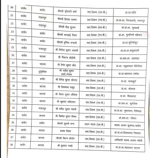 कांकेर। छत्तीसगढ़ के कांकेर जिले में युक्तियुक्तकरण के तहत अतिशेष शिक्षकों ने पूरा सत्र बीत जाने के बावजूद नई पदस्थापना पर ज्वाइनिंग नहीं किया। इस मामले में शिक्षा विभाग ने सख्त कदम उठाया है। कांकेर डीईओ ने 38 शिक्षकों को निलंबित कर दिया है, जिनमें 29 महिला शिक्षक शामिल हैं।