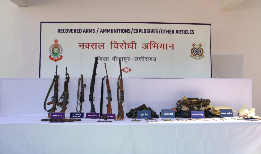 - रेडियो, स्केनर, मल्टीमीटर, हेण्ड ग्रेनेड,सेफ्टी फ्यूज, माओवादी साहित्य, पोच, माओवादी वर्दी, मेडिकल सामग्री एवं अन्य सामग्री