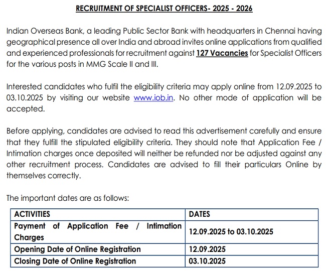 - Indian Overseas Bank SO Recruitment 2025 Online Form